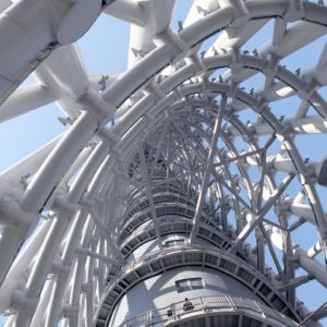 廣州塔由一座454米的塔身和156米的鋼結構桅桿組成,總高610米。塔身由鋼結構外框筒和鋼筋混凝土核心筒構成。內(nèi)外框筒通過樓層結構相連,但樓層缺失一半。焊接工作是廣州塔項目高難度工作之一,鋼結構外筒均采用鋼管構件,高空節(jié)點均為等強焊接連接。從保證焊接質(zhì)量、提高焊接功效、減少焊